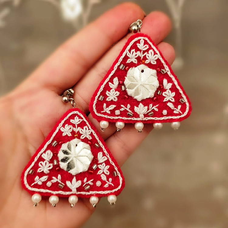 گوشوارهای برای دلهایی که آهسته میدرخشند و شنیده نمیشوند. اتصالات کاملا استیل و ضد حساسیت و رنگ ثابت. رنگ نخ ها و زمینه به درخواست شما قابل تغییر است. تماما دستدوز و دستساز.