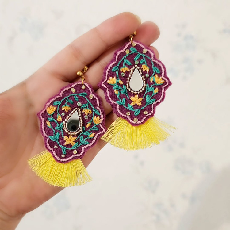 گوشواره گلدوزی اشک گل
